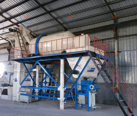该生产线为双配套生产设备,即砂浆混合及玻化微珠混合。其中,砂浆混合采用卧式无重力搅拌机,混合水泥、沙子、添加剂等,具有混合时间短、均匀度高的优点。无轴滚筒式玻化微珠专用混合机,内部机构设计独特,能保证物料在原始状态下均匀混合,同时将破损率降低。该配套设备是目前生产单组份无机保温砂浆较为科学合理的生产模式。